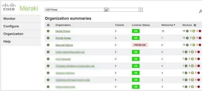 Meraki專門建設了一個MSP門戶,讓MSP能夠將基礎設施分為不同的控制面板組織來管理客戶。此門戶可以為MSP NOC提供多個組織的可視性和快速訪問能力。