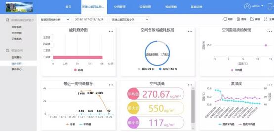 信銳物聯網平臺提供多樣化的數據統計分析功能:環境監測數據統計分析、環境狀態趨勢分析、照明系統能耗統計分析、每日耗電量統計分析等,幫助校園用戶總體把控校園實時信息,掌握校園較新動態。