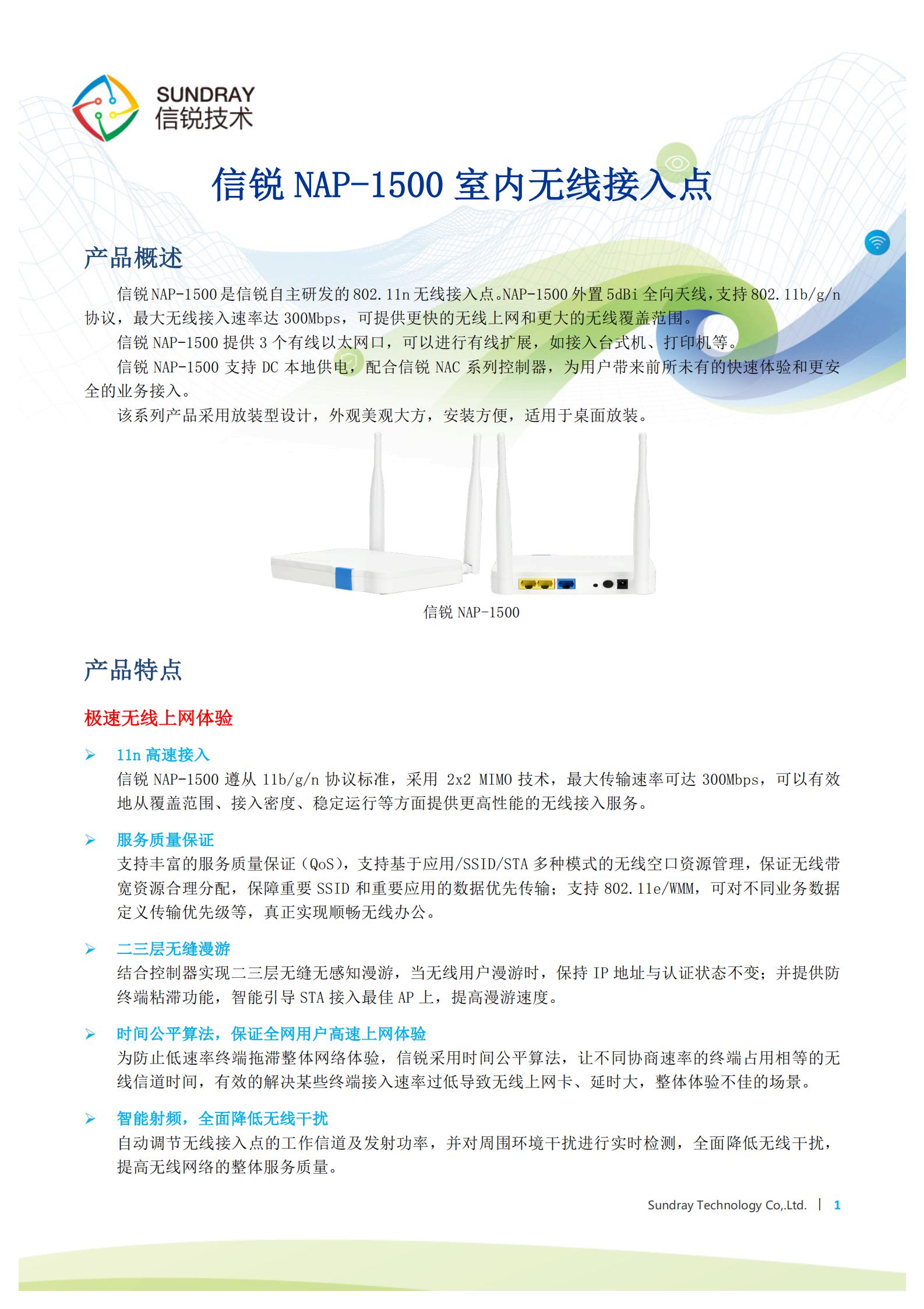 NAP-1500無線AP是信銳技術自主研發的802.11n室內SMB無線接入點。